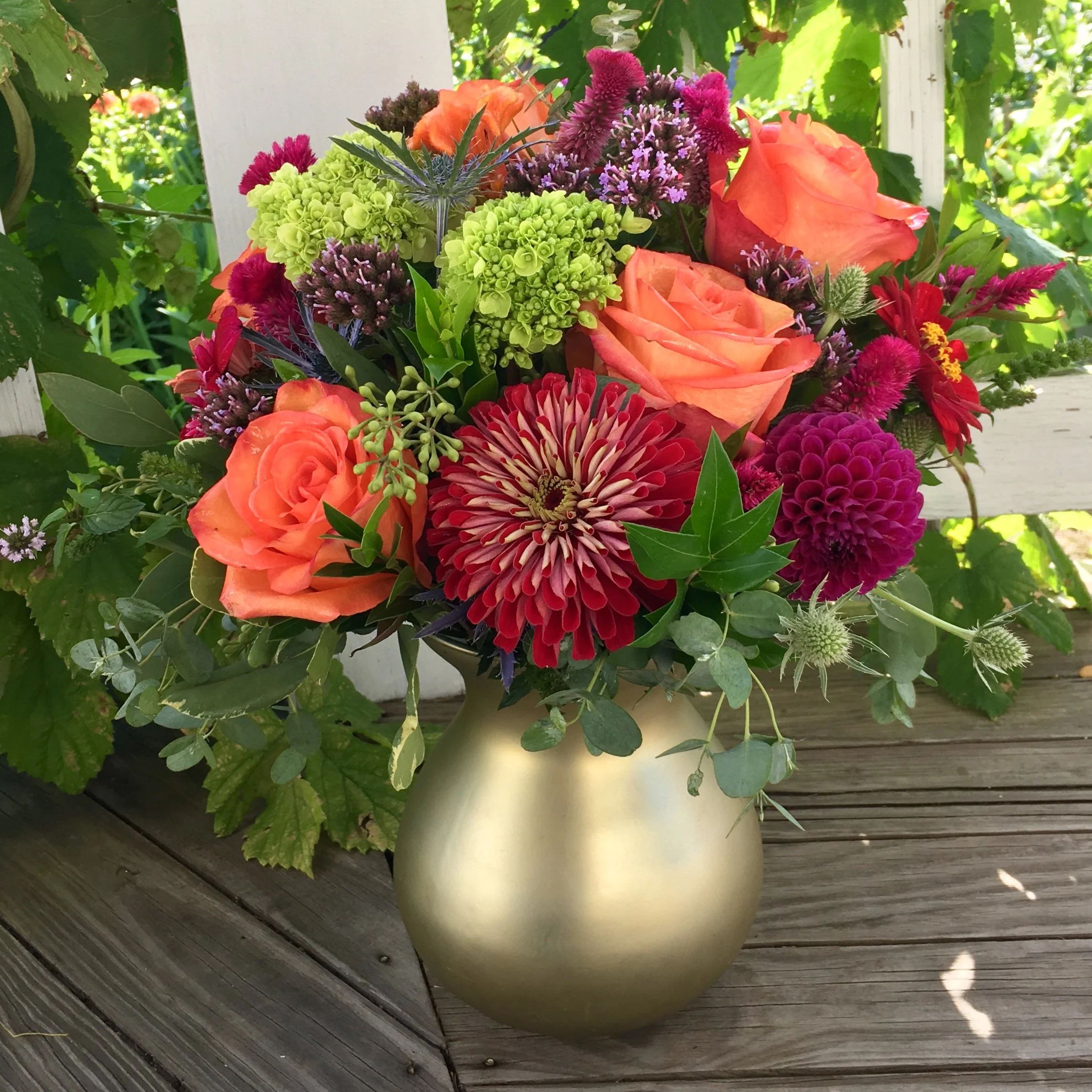 We are different from most florists…. we don’t stock an inventory of pre-made arrangements; all florals are made to order. We use fresh, and whenever possible, locally grown flowers to create bouquets and vase arrangements. We don’t have a store and work from a design studio in our Victorian Farmhouse home in Medford.