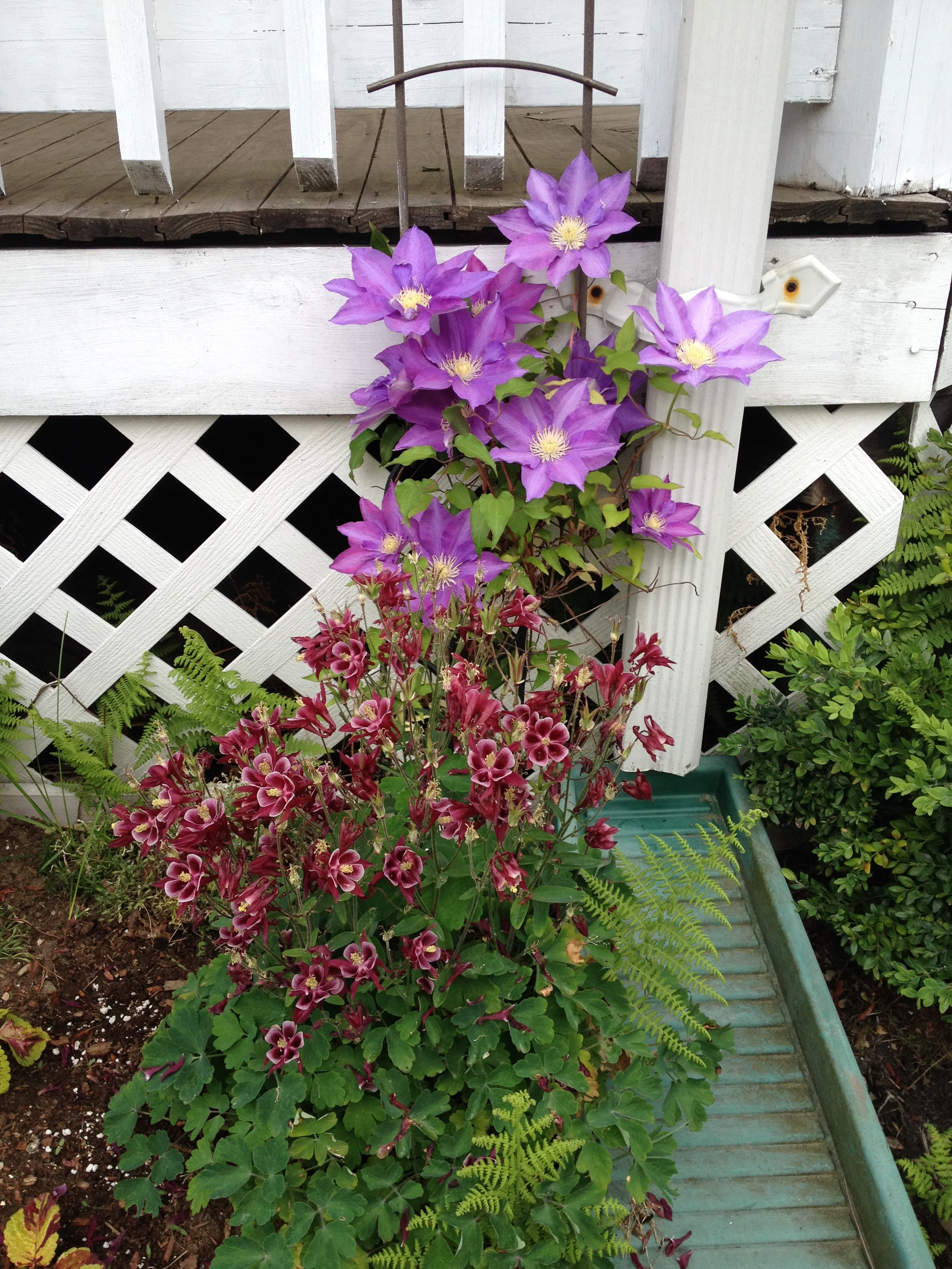 Spring is a great time in the garden... Columbine and Clamatis vine from spring 2016.